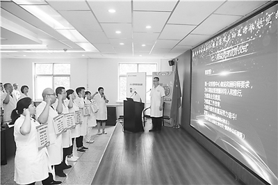 圖為市中心血站參會(huì)職工鄭重宣誓,拉開了6S精益管理活動(dòng)的序幕。記者 馬越 攝