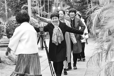 安次區(qū)充分利用毗鄰京津的區(qū)位優(yōu)勢(shì),大力發(fā)展現(xiàn)代休閑旅游產(chǎn)業(yè),整合開(kāi)辟精品旅游線路,加快改善軟硬件環(huán)境,全力構(gòu)建環(huán)京津休閑旅游產(chǎn)業(yè)鏈,打造精品旅游品牌。坐落該區(qū)的“九天休閑谷”免費(fèi)向市民開(kāi)放,這里四季如春,花樹(shù)繁茂,休閑區(qū)、健身區(qū)、餐飲區(qū)一應(yīng)俱全,吸引了大量當(dāng)?shù)丶熬┙虻挠慰蛠?lái)此游玩。圖為游客在“九天休閑谷”拍攝抖音視頻。