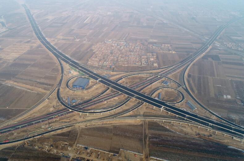 這是1月3日拍攝的北京大興國(guó)際機(jī)場(chǎng)北線高速公路廊坊段王場(chǎng)互通樞紐(無人機(jī)照片)。 新華社記者牟宇攝
