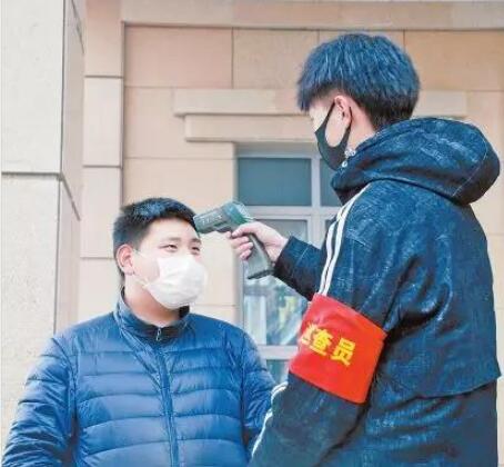 1月28日,大年初四,三河市新天地小區(qū)巡視員為進(jìn)入小區(qū)的每個人測量體溫,確保排查到位、防控到 位?!独确蝗請?bào)》通訊員 陳建 攝