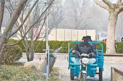 1月27日,自然公園門前廣場,工人給垃圾箱噴灑藥水消毒。記者 任曉燕 攝