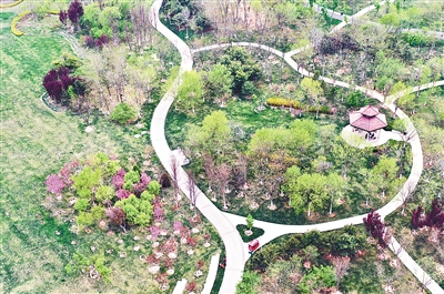 此時的星河森林公園亦是春林盡染,筆直挺拔的蒙古櫟、黃金榆、速生白蠟與嬌艷多姿的玉蘭、海棠、連翹剛?cè)岣鳟?,紛紛向踏青賞花的游人描述著春天的美好。