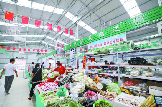 “以前是露天的,下雨天泥濘不堪。現(xiàn)在市場道路硬化了,還搭建了彩鋼棚,瓜果蔬菜、糧油日雜種類豐富,買東西方便多了?!痹诒辈r(nóng)貿(mào)市場,市民豎起了大拇指。