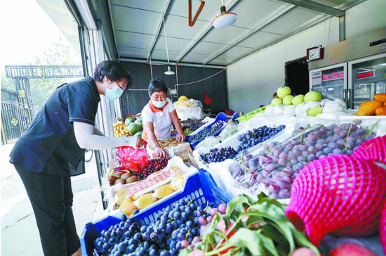 市民在永興路郁濃菜市場選購水果(資料片)。 記者 賈珺 攝