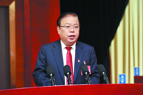 楊曉和代表中國共產(chǎn)黨廊坊市第六屆委員會向大會作報告。?