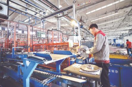 圖為在布雷博惠聯(lián)(廊坊)制動(dòng)系統(tǒng)有限公司生產(chǎn)車間內(nèi),工人正在檢驗(yàn)制動(dòng)盤。