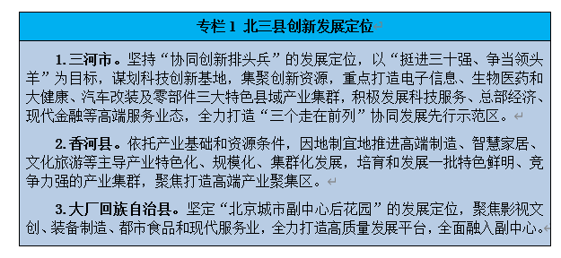 三河、大廠、香河要緊緊抓住通州建設(shè)北京城市副中心的機(jī)遇,積極主動(dòng)地承接北京非首都功能疏解,按照四統(tǒng)一要求,在規(guī)劃管理、投資審批、財(cái)稅分享、要素自由流動(dòng)、公共服務(wù)、營(yíng)商環(huán)境等方面探索一體化高質(zhì)量發(fā)展協(xié)同創(chuàng)新路徑,著力打造北三縣與通州區(qū)一體化高質(zhì)量發(fā)展示范區(qū)。依托燕郊國(guó)家高新區(qū)、三河經(jīng)開(kāi)區(qū)、大廠高新區(qū)、香河經(jīng)開(kāi)區(qū),積極推進(jìn)北三縣科技創(chuàng)新功能建設(shè),大力吸引北京高校院所、企業(yè)研發(fā)總部、科技服務(wù)機(jī)構(gòu)等創(chuàng)新資源,共建一批國(guó)家重點(diǎn)實(shí)驗(yàn)室、技術(shù)研發(fā)中心、科技企業(yè)孵化器、科技成果中試熟化基地等,培育一批高新技術(shù)企業(yè),提升協(xié)同創(chuàng)新能力。瞄準(zhǔn)北京“擺不下、離不開(kāi)、走不遠(yuǎn)”戰(zhàn)略性新興產(chǎn)業(yè)資源,在中試孵化、生產(chǎn)制造和配套服務(wù)環(huán)節(jié)加強(qiáng)與通州區(qū)的產(chǎn)業(yè)協(xié)同,重點(diǎn)打造燕郊北部科學(xué)城、中國(guó)人民大學(xué)文化創(chuàng)意產(chǎn)業(yè)園、香河高鐵商務(wù)區(qū)等承接平臺(tái),主動(dòng)融入北京市產(chǎn)業(yè)鏈、創(chuàng)新鏈、供應(yīng)鏈,精準(zhǔn)布局高效承接北京高端創(chuàng)新資源,建設(shè)聚集最新科技成果的協(xié)同創(chuàng)新大平臺(tái)。