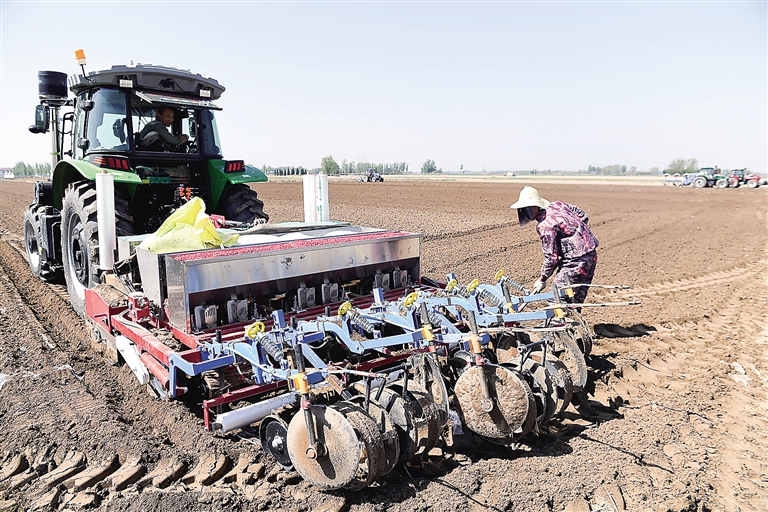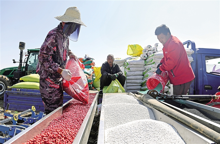在北魏鎮(zhèn)牛莊村花生種植基地,農(nóng)民正為播種花生做準備。