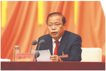 市委書記楊曉和代表市委常委會講話。 記者 賈珺 劉向 攝