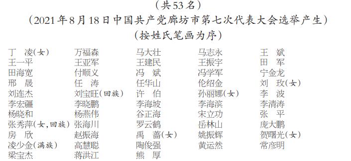 中國共產(chǎn)黨廊坊市第七屆委員會委員名單