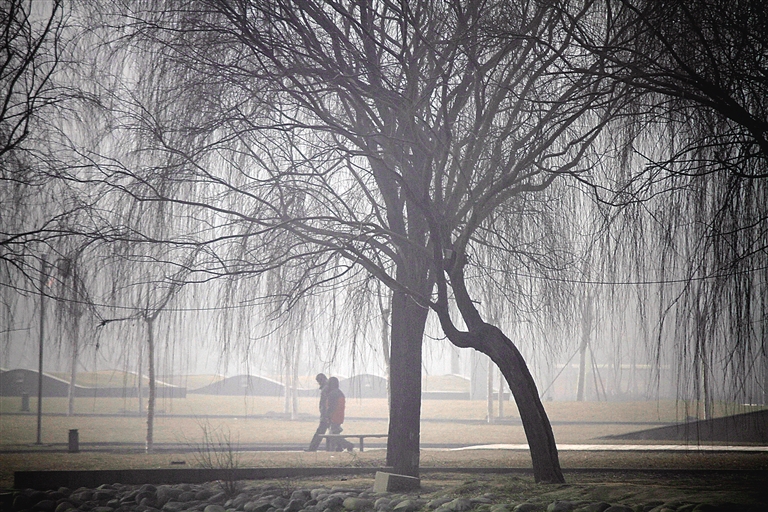 二〇一三年二月二十八日,霧霾下的廊坊文化公園。記者 陳童 攝