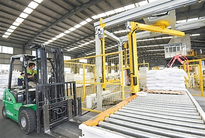 河北馳野玻璃珠有限責(zé)任公司擁有國內(nèi)最大的玻璃珠立體倉儲系統(tǒng)以及全自動篩分、級配、包裝系統(tǒng),實現(xiàn)了全程清潔生產(chǎn)和自動化管理。同時,該公司具備國內(nèi)最完備的玻璃珠綜合檢測實驗室,能獨立完成玻璃珠所有指標(biāo)的檢測,滿足玻璃珠新技術(shù)和新產(chǎn)品開發(fā)的需求。據(jù)了解,目前該公司的訂單量呈現(xiàn)爆發(fā)式增長,已排到7月下旬,月銷售額可達(dá)6000萬元。目前,該公司在做好疫情防控的基礎(chǔ)上加緊生產(chǎn),確保取得更好業(yè)績。圖為6月17日,該公司自動包裝設(shè)備正在將玻璃珠產(chǎn)品包裝碼垛。記者 劉向 攝