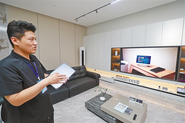 在香河金鑰匙家居城小米智能家居體驗(yàn)中心,工作人員控制各項(xiàng)智能家居運(yùn)行。