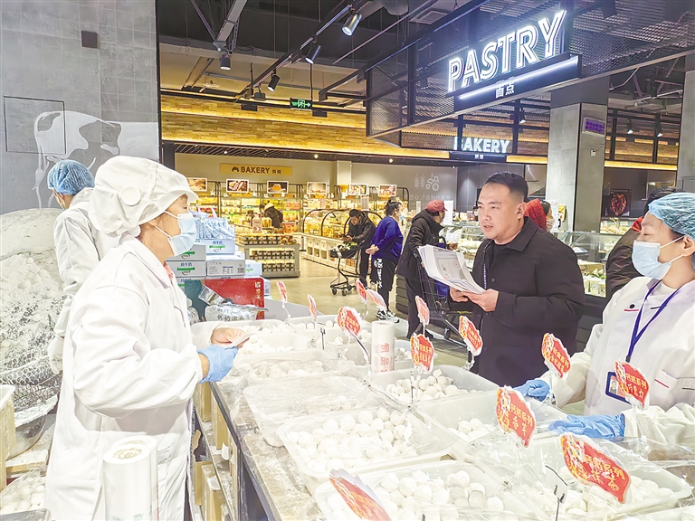 執(zhí)法人員以節(jié)日熱銷的元宵(湯圓)、糕點、肉類、糧油等為重點品種,檢查食品經(jīng)營單位的證照是否齊全、索證索票和進貨查驗制度是否落實到位,產(chǎn)品標(biāo)簽標(biāo)識是否完整、儲存方式是否符合規(guī)范,散裝元宵(湯圓)標(biāo)簽是否按規(guī)定公示以及防止食品污染設(shè)施是否齊備,元宵(湯圓)是否清晰標(biāo)注產(chǎn)品名稱、生產(chǎn)日期、保質(zhì)期等關(guān)鍵信息。檢查的同時,督促食品經(jīng)營者嚴(yán)格履行食品安全主體責(zé)任,進一步增強食品安全意識,切實落實各項食品安全管理制度,嚴(yán)守食品安全底線,保護消費者合法權(quán)益。截至目前,共檢查食品經(jīng)營單位30家次,針對檢查發(fā)現(xiàn)的問題,已責(zé)令整改到位。