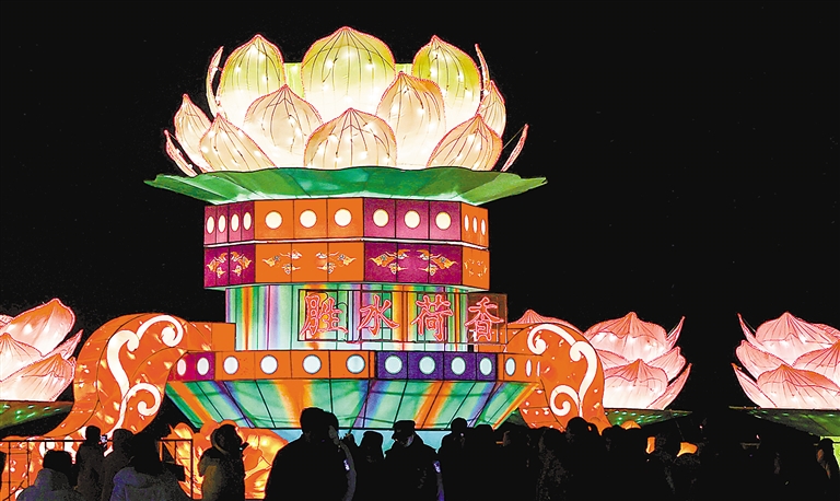 2月9日,為期5天的霸州市勝芳傳統(tǒng)元宵燈會(huì)如期而至,本次燈會(huì)將從農(nóng)歷正月十二持續(xù)至正月十六。今年,勝芳古鎮(zhèn)共設(shè)置了8個(gè)區(qū)域65組大型燈,氣勢(shì)恢宏的“錦繡山河”,葦塘邊靈動(dòng)優(yōu)雅的“蓮年有魚”,吸引著游客駐足觀賞,人們?cè)谌饸庀楹椭衅硗履旰眠\(yùn)。圖為2月11日,勝芳傳統(tǒng)元宵燈會(huì)現(xiàn)場(chǎng)人潮涌動(dòng)。