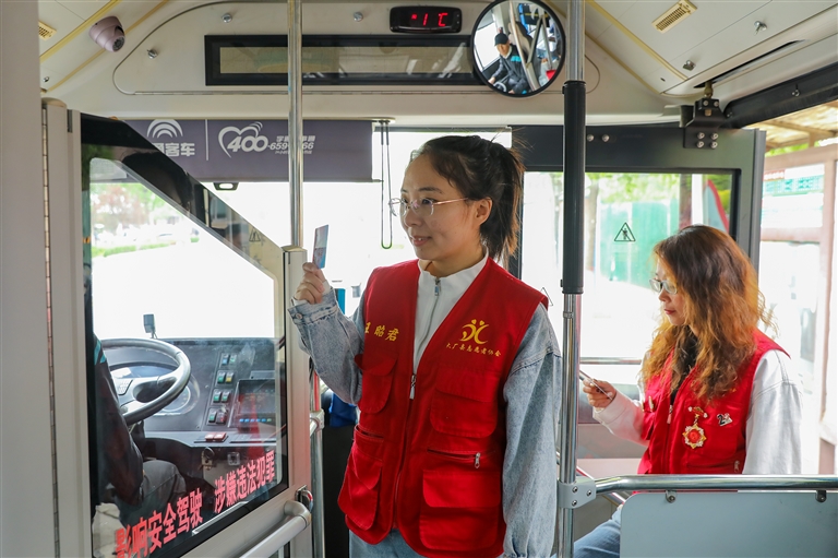 志愿者憑禮遇卡免費乘坐公交車。記者 楊苗苗 通訊員 孟楠 攝