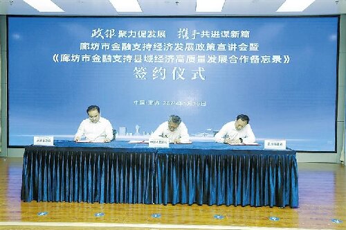為深入貫徹落實(shí)中共中央、國(guó)務(wù)院關(guān)于推動(dòng)縣域高質(zhì)量發(fā)展的決策部署,強(qiáng)化縣域金融支持,優(yōu)化縣域金融服務(wù)體系,切實(shí)提升金融服務(wù)實(shí)體經(jīng)濟(jì)的能力和水平,人行廊坊市分行舉辦了廊坊市金融支持經(jīng)濟(jì)發(fā)展政策宣講會(huì)暨《廊坊市金融支持縣域經(jīng)濟(jì)高質(zhì)量發(fā)展合作備忘錄》簽約儀式。