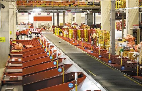 京東智能產(chǎn)業(yè)園廊坊固安二期項目工業(yè)智能分撥中心內(nèi),快遞分揀工作正在有序進行。