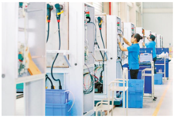 圖為美儀電氣有限公司工作人員正在對設(shè)備進(jìn)行調(diào)試。 本報記者 楊苗苗 本報通訊員 何賽 攝