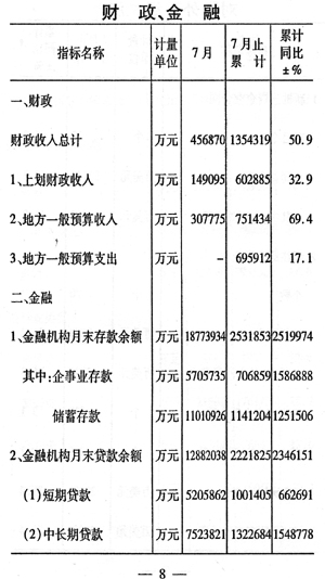 —一金融形勢平穩(wěn)。7月末,全市金融機構(gòu)本外幣各項存款余額1877.4億元,比年初增加253.2億元,其中城鄉(xiāng)居民儲蓄存款余額1101.1億元,比年初增加114.1億元。各項貸款余額1288.2億元,比年初增加222.2億元。