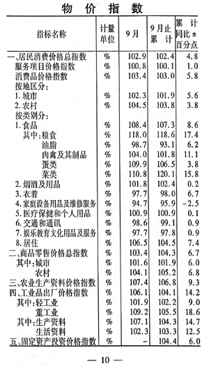 ——物價(jià)小幅上揚(yáng)。全市居民消費(fèi)價(jià)格總指數(shù)102.4,商品零售價(jià)格總指數(shù)104.3,與上年同期相比,漲幅分別提高4.8個和6.7個百分點(diǎn)。農(nóng)業(yè)生產(chǎn)資料價(jià)格上漲6.8%,工業(yè)品出廠價(jià)格上漲4.1%。