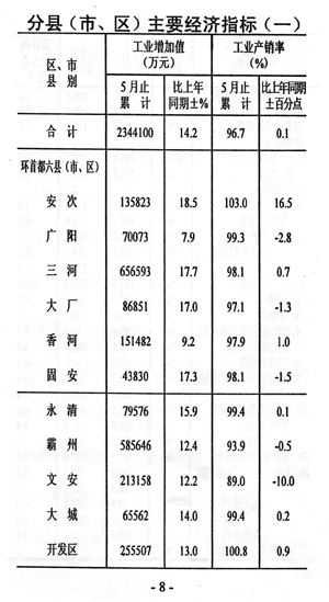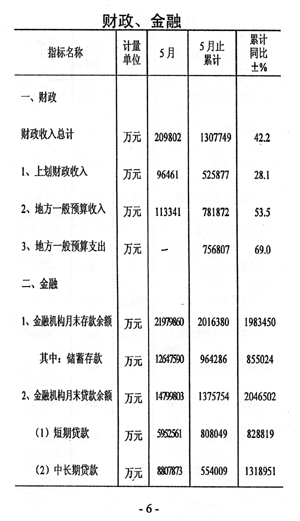 今年前五個月全市國民經(jīng)濟(jì)運行情況如下: