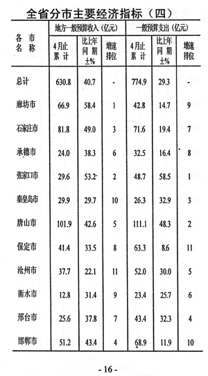 效益增幅減緩。前四個月規(guī)模以上工業(yè)企業(yè)實現(xiàn)利稅和利潤分別為50.8億元和33.1億元,同比分別增長23.0%和16.8%,與一季度相比增速分別回落了6.5個和7.8個百分點。