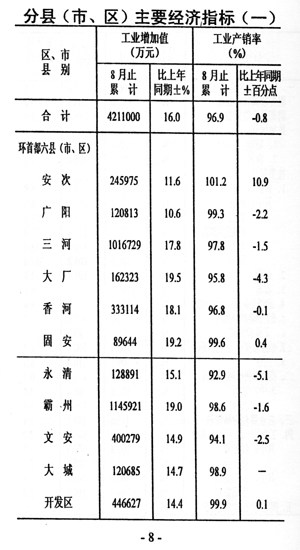 前八個(gè)月,全市國(guó)民經(jīng)濟(jì)運(yùn)行情況如下: