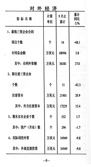 一一外資增速下降。實際利用外資完成34949萬美元,同比下降9.8%,與上月相比回落26.5個百分點,34949萬美元全部為外商直接投資。