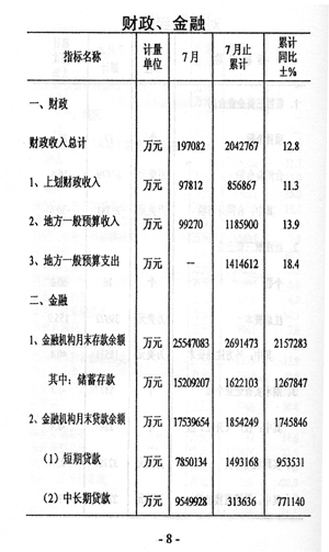 ——金融存貸穩(wěn)定。截至7月底,全市本外幣各項存款余額2554.7億元,比年初增加269.1億元,其中城鄉(xiāng)居民儲蓄存款余額1520.9億元,比年初增加162.2億元,各項貸款余額1754.0億元,比年初增加185.4億元。