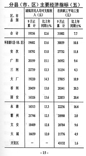 ——城鄉(xiāng)收入增加。城鎮(zhèn)居民人均可支配收入19356元,同比增加2159元,增長12.6%,與上年同期相比增速提高0.4個百分點;在崗職工平均工資31002元,同比增加2213元,增長7.7%,與上年同期相比回落6.4個百分點;農民人均現金收入預計11394元,同比增加1522元,增長15.8%。