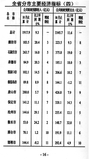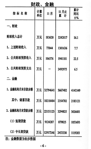 ——財(cái)政增速加快。全市財(cái)政收入實(shí)現(xiàn)324.3億元,增長(zhǎng)16.1%,與1-10月份相比增速提高2.1個(gè)百分點(diǎn)。其中,公共財(cái)政預(yù)算收入實(shí)現(xiàn)194.1億元,增長(zhǎng)22.5%,與1-10月相比增速提高2.1個(gè)百分點(diǎn)。