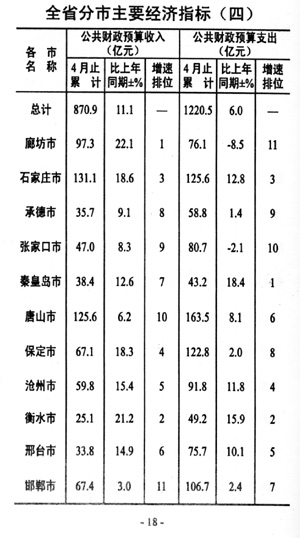——財(cái)政快速增長(zhǎng)。全市財(cái)政收入實(shí)現(xiàn)183.6億元,增長(zhǎng)15.4%,其中,公共財(cái)政預(yù)算收入實(shí)現(xiàn)113.7億元,增長(zhǎng)21.2%,與1-4月份相比均回落1.0個(gè)百分點(diǎn),與上年同期相比提高5.0和9.7個(gè)百分點(diǎn)。