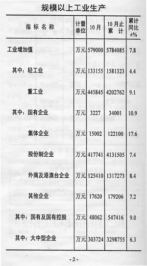 1-10月份,全市宏觀經(jīng)濟(jì)運(yùn)行情況如下: