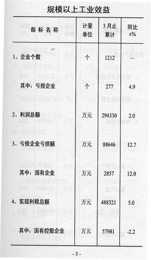 一季度,全市規(guī)模以上工業(yè)實(shí)現(xiàn)利潤(rùn)總額29.4億元,同比增長(zhǎng)2.0%,高于全省平均水平9.5個(gè)百分點(diǎn)。實(shí)現(xiàn)利稅總額48.8億元,同比增長(zhǎng)5.0%,高于全省水平5.2個(gè)百分點(diǎn)。