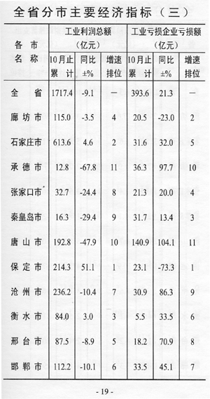 ——物價總體平穩(wěn)。全市居民消費價格總指數(shù)100.2,同比回落1.5個百分點;商品零售價格總指數(shù)99.4,回落1.7個百分點;農(nóng)業(yè)生產(chǎn)資料價格指數(shù)99.8,回落1.6個百分點;工業(yè)生產(chǎn)者出廠價格指數(shù)93.9,回落2.3個百分點。