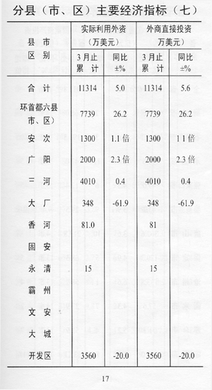 ——利用外資增加。全市實際利用外資11314萬美元,同比增長5.0%,比上年同期回落1.0個百分點。其中:外商直接投資11314萬美元,增長5.6%。