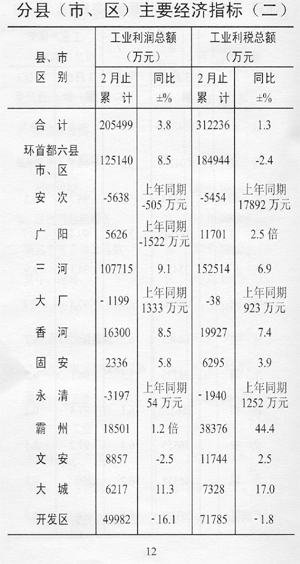 1-2月份,規(guī)模以上工業(yè)完成利潤總額20.5億元,同比增長3.8%,比上年同期回落3.7個百分點;完成利稅總額31.2億元,增長1.3%,比上年同期回落9.8個百分點。