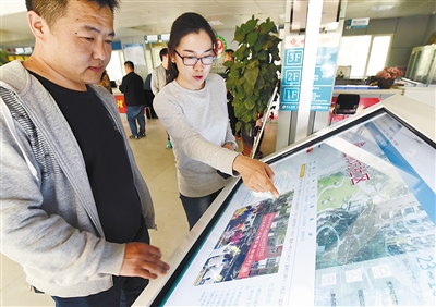 圖為康樂便民服務(wù)中心內(nèi),社區(qū)居民在便民電子大屏查看信息。