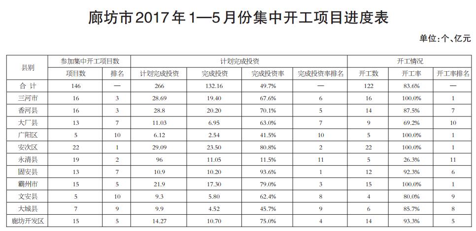 3、廊坊市2017年1-5月份集中開工項(xiàng)目進(jìn)度表