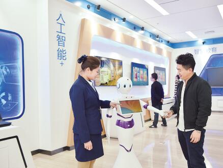 廊坊開發(fā)區(qū)騰訊眾創(chuàng)空間(廊坊)雙創(chuàng)社區(qū)路演中心,市民在與小蘿卜早教機互動。