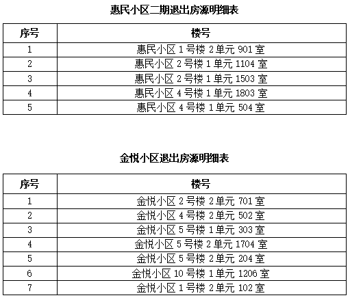 根據(jù)金橋開發(fā)公司提供的退房信息,增加退出房源一套:金悅小區(qū)1號樓2單元102室。第二輪退出房源合計(jì)12套,明細(xì)如下: