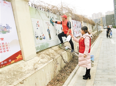 或拿著小鐵鏟,清理墻面、電線桿上的“牛皮癬”;或勸導(dǎo)居民文明、有序停車……走在馨語社區(qū),市民常會見到頭戴“小紅帽”、身穿紅馬甲的文明志愿者忙碌的身影。