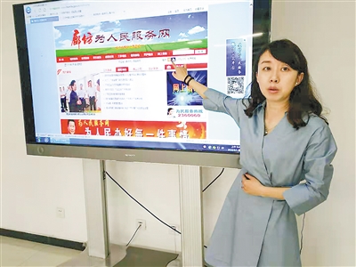 圖為工作人員講解智慧信訪服務平臺使用方法。記者 辛建偉 攝