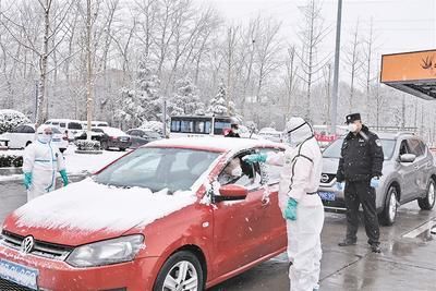 “同志,請(qǐng)接受體溫檢查?!?月2日清晨,記者在京滬高速廊坊口檢查站進(jìn)京方向健康篩查站看到,在紛紛揚(yáng)揚(yáng)的雪花中,由衛(wèi)生防疫人員和公安交警組成的聯(lián)合篩查組“全副武裝”,對(duì)所有進(jìn)京車輛里的人員進(jìn)行體溫檢測(cè)。車上乘員全部檢測(cè)體溫正常,車輛才能放行通過。