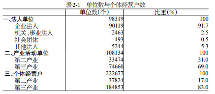 2018年末,全市共有從事第二產(chǎn)業(yè)和第三產(chǎn)業(yè)活動(dòng)的法人單位98319個(gè),比2013年末(2013年是第三次全市經(jīng)濟(jì)普查年份,下同)增加71727個(gè),增長(zhǎng)2.7倍;產(chǎn)業(yè)活動(dòng)單位108134個(gè),增加77229個(gè),增長(zhǎng)2.5倍;個(gè)體經(jīng)營(yíng)戶222677個(gè)(詳見(jiàn)表2-1)。