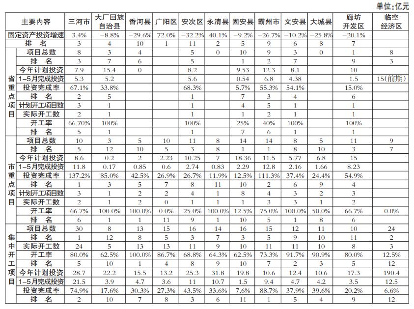 廊坊市2020年1—5月投資和重點(diǎn)項目建設(shè)情況通報